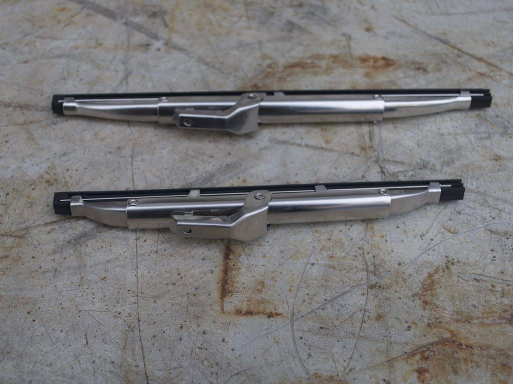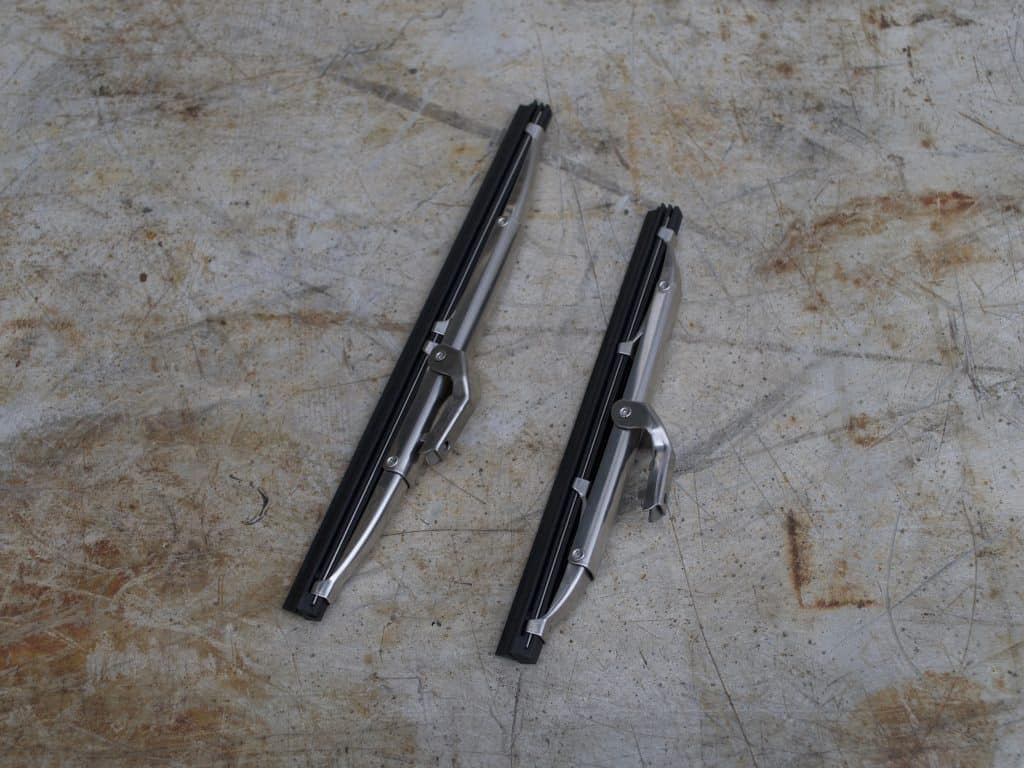 Classic chassis cars have 5mm arm width and bayonet connector. The new style blades are of the standard classic stainless type and have replaceable rubbers consequently they stand higher from the screen. All Morgans are hand built and as such there are always exceptions to the rule!!!!